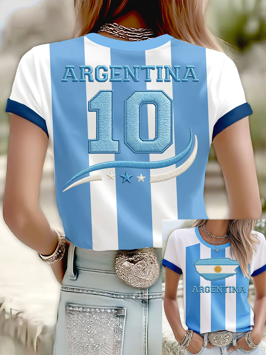 Maglietta argentina a maniche corte da donna