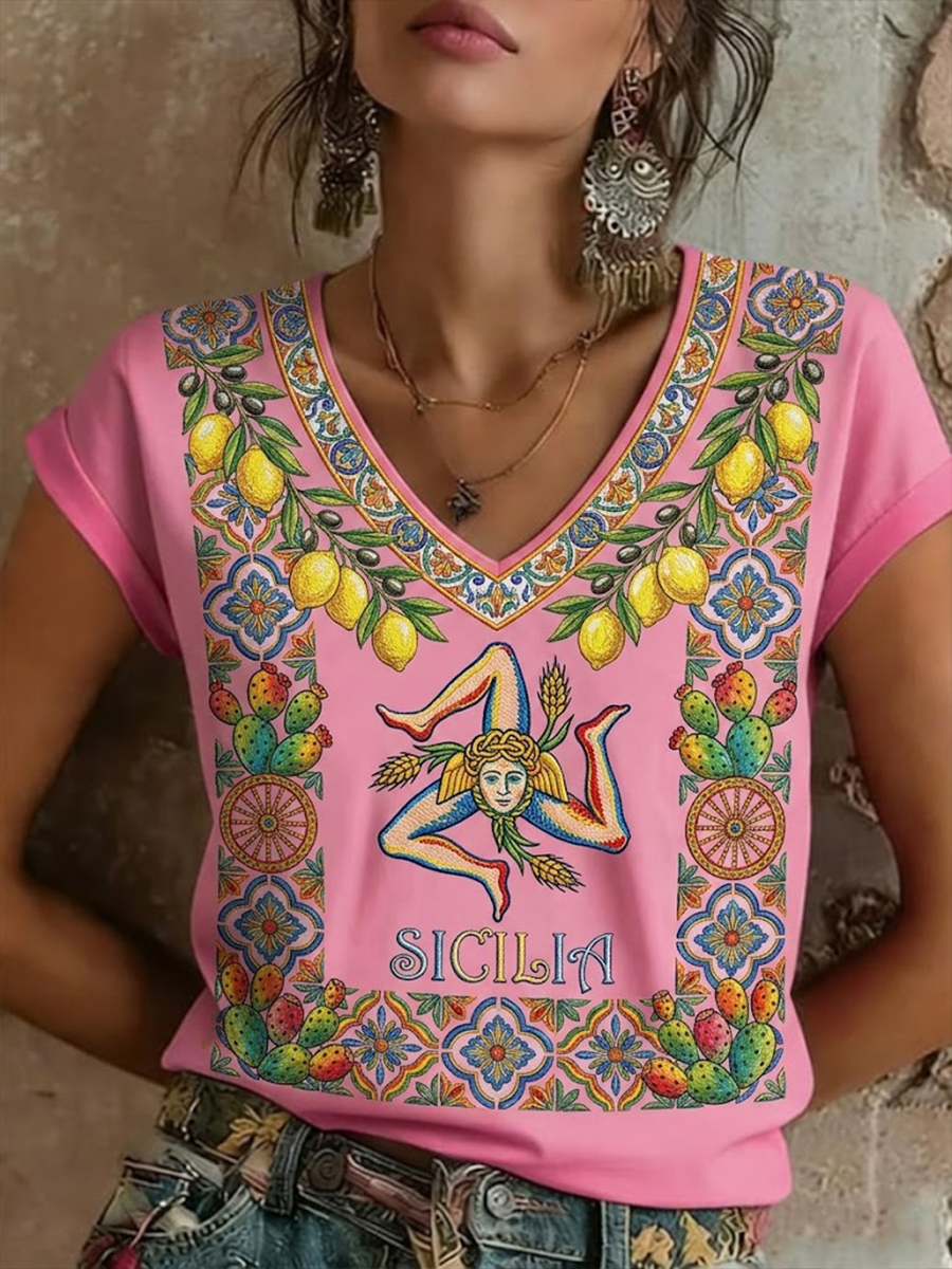 T-shirt da donna Sicilia Trinacria a maniche corte